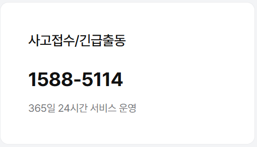 ✅ 애니카 사고접수/긴급출동 전화번호는 아래와 같습니다. 365일 24시간 고객센터를 운영하고 있으니 문제 발생 시 아무 때나 전화하시면 됩니다.